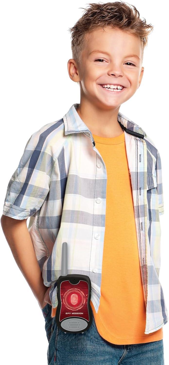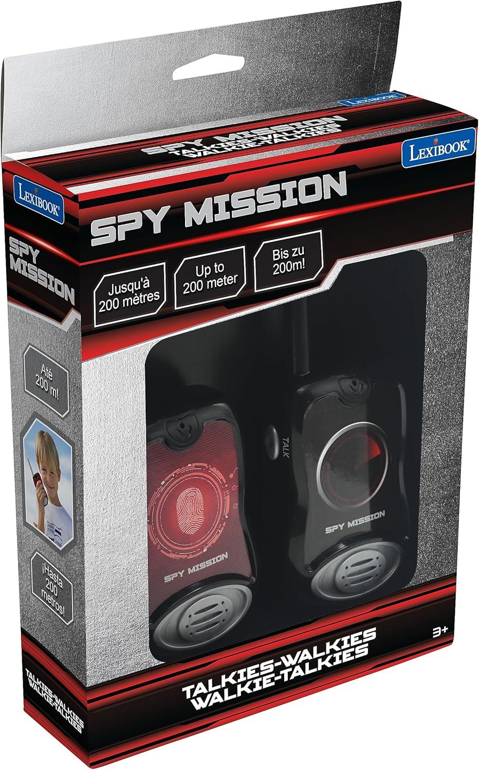 LEXiBOOK – Spy Mission – Walkie Talkies, 200m, Communication Set for Kids, 2 Communication Channels, Belt Clip, Black/Red, TW12SPY