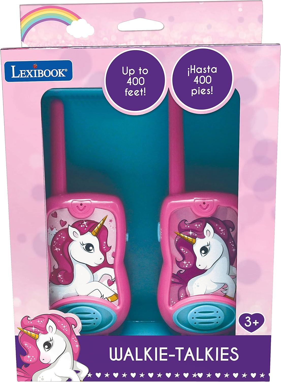 Lexibook Walkie-talkies for Kids, Toys Long Range 8km / 5 Miles, LCD Screen, Digital Sound, Indoor and Outdoor Communication Game, Belt Clip, Black, TW58US(Unicorn – 400 feet version)
