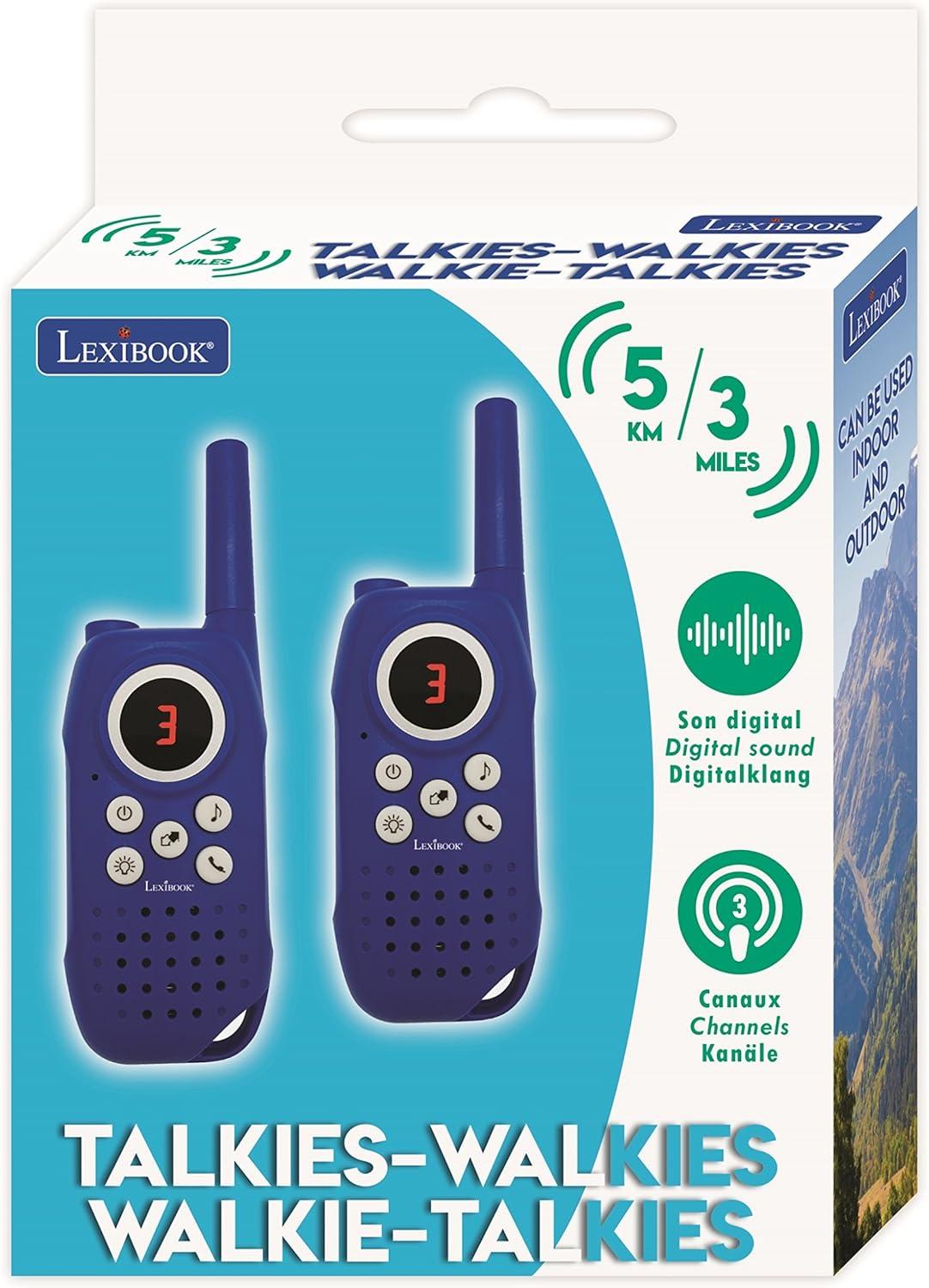 Lexibook 5km / 3 Miles Walkie-talkies, Digital Sound, Indoor and Outdoor Communication Game, Belt Clip, Blue, TW42