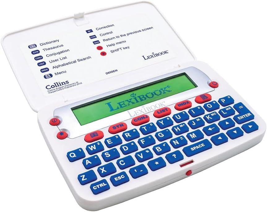 LEXiBOOK – The Collins English Dictionary, 13th Edition – Electronic Dictionary, Definitions, Thesaurus, Conjugation, Phonetic Spellchecker, Crossword Solver, with Battery, Blue/White, D850EN