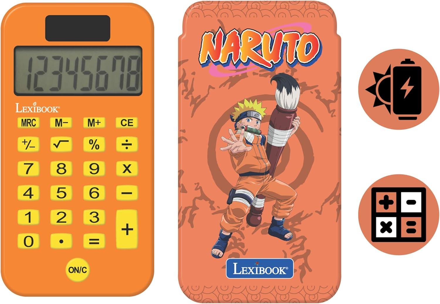 Lexibook, Naruto, Pocket Calculator with Protection Cover, Conventional and Advanced Calculator Functions, Battery and Solar-Powered, Orange, C45NA
