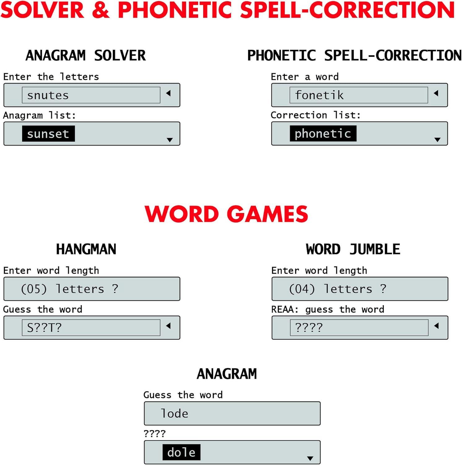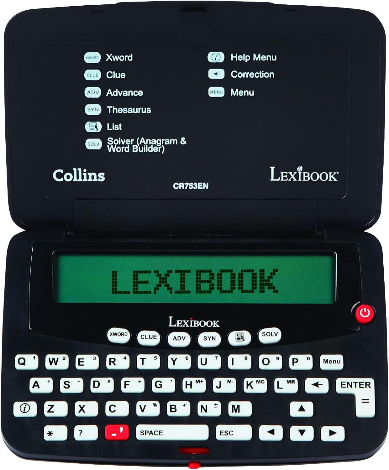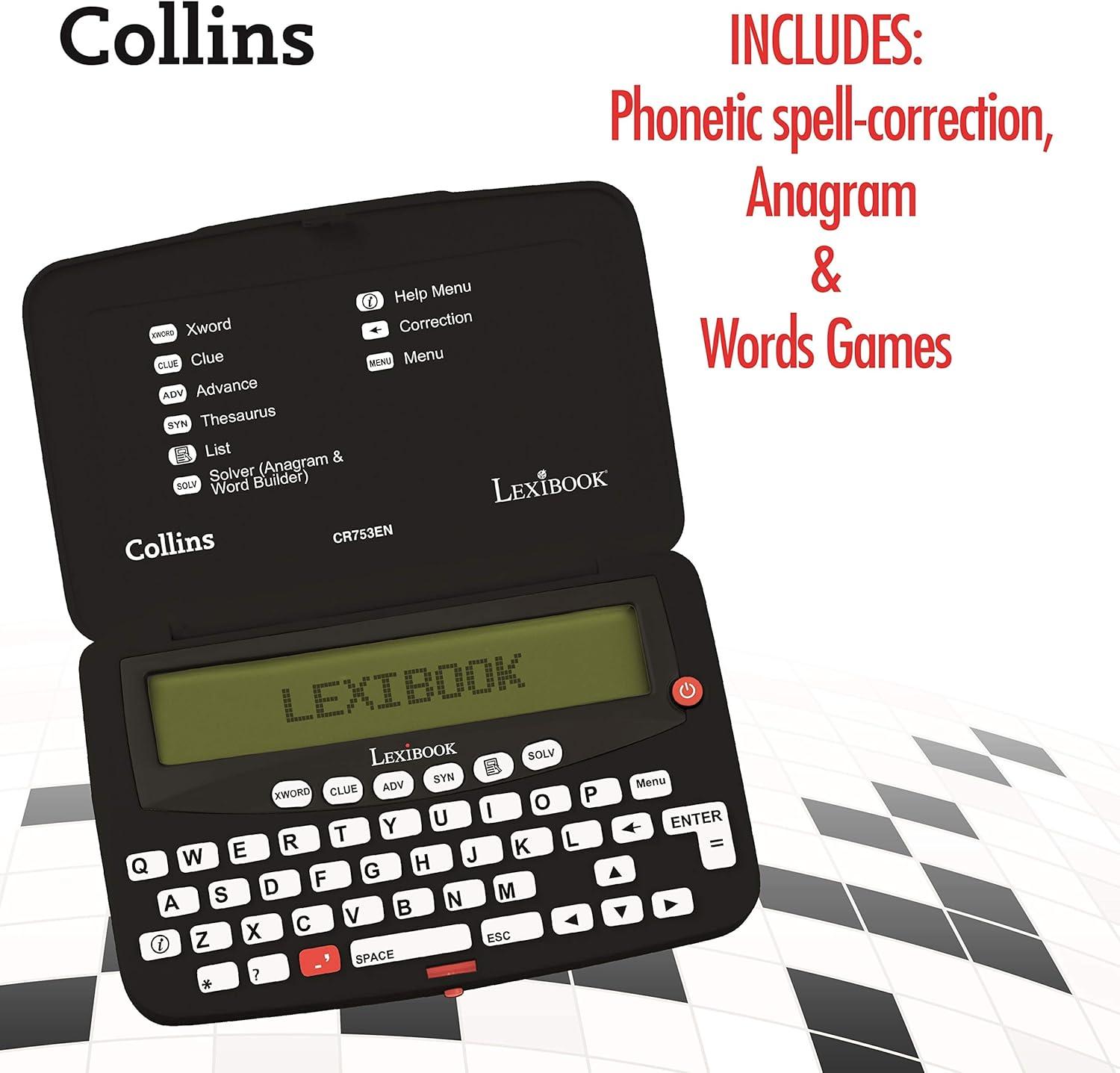 LEXiBOOK – Collins Bradford, Electronic Crossword Solver, Bradford, Phonetic Spell-Correction, Words Games, Electronic, with Battery, Black/White, CR753EN