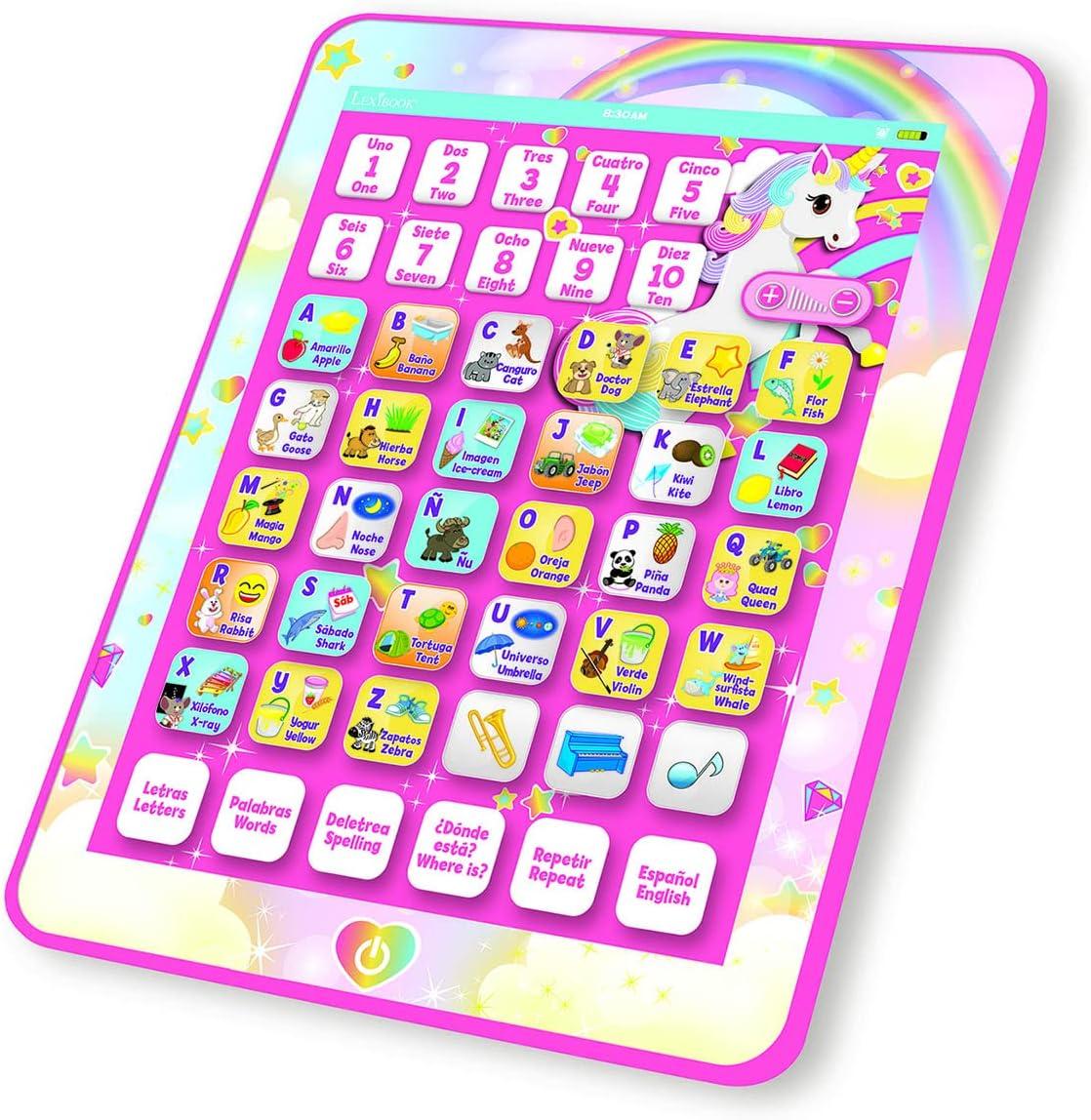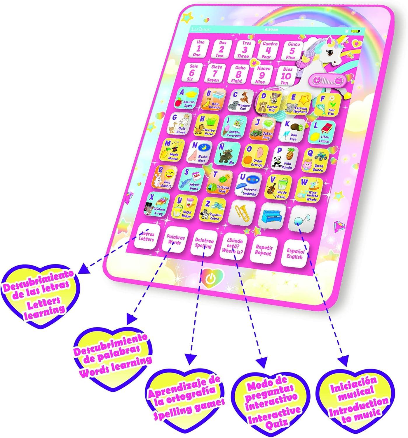 LEXiBOOK, Paw Patrol, Educational Bilingual English/Spanish Interactive Learning Tablet, Toy to Learn Alphabet, Letters, Numbers, Words, Spelling and Music, Blue, JCPAD002PAi2(Unicorn)