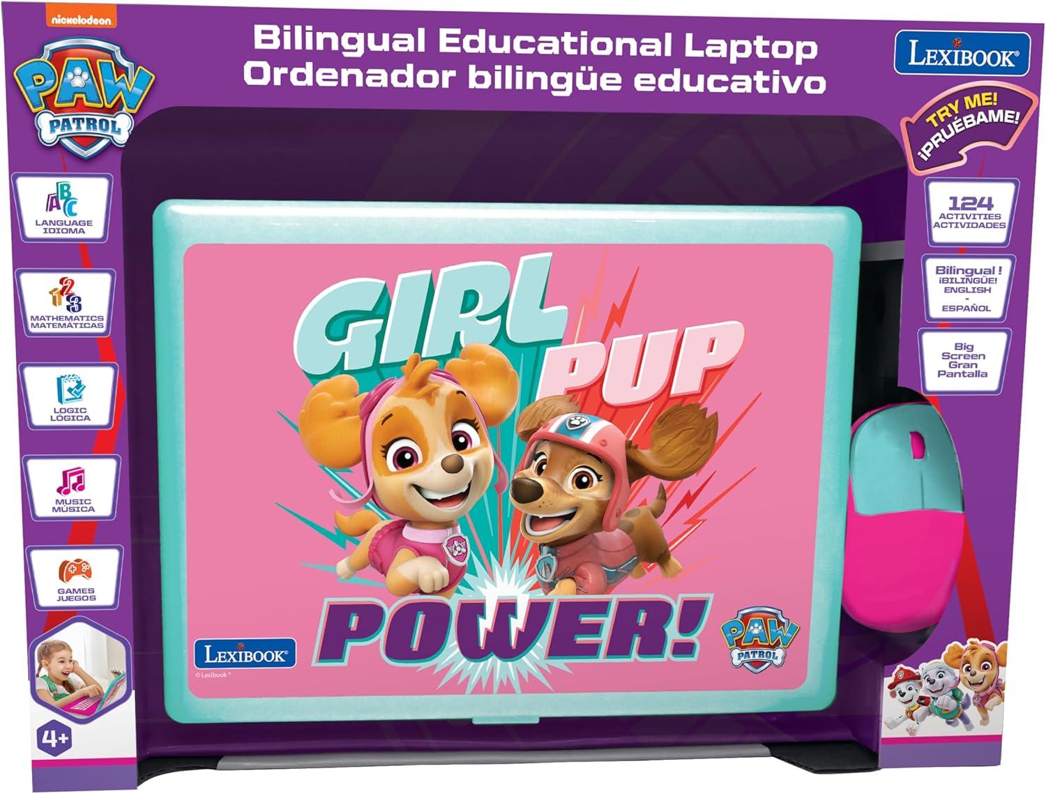 Lexibook, Paw Patrol, Educational and Bilingual Laptop in English/Spanish, Toy for Children with 124 Activities to Learn, Play Games and Music, Pink, JC598PAGi2