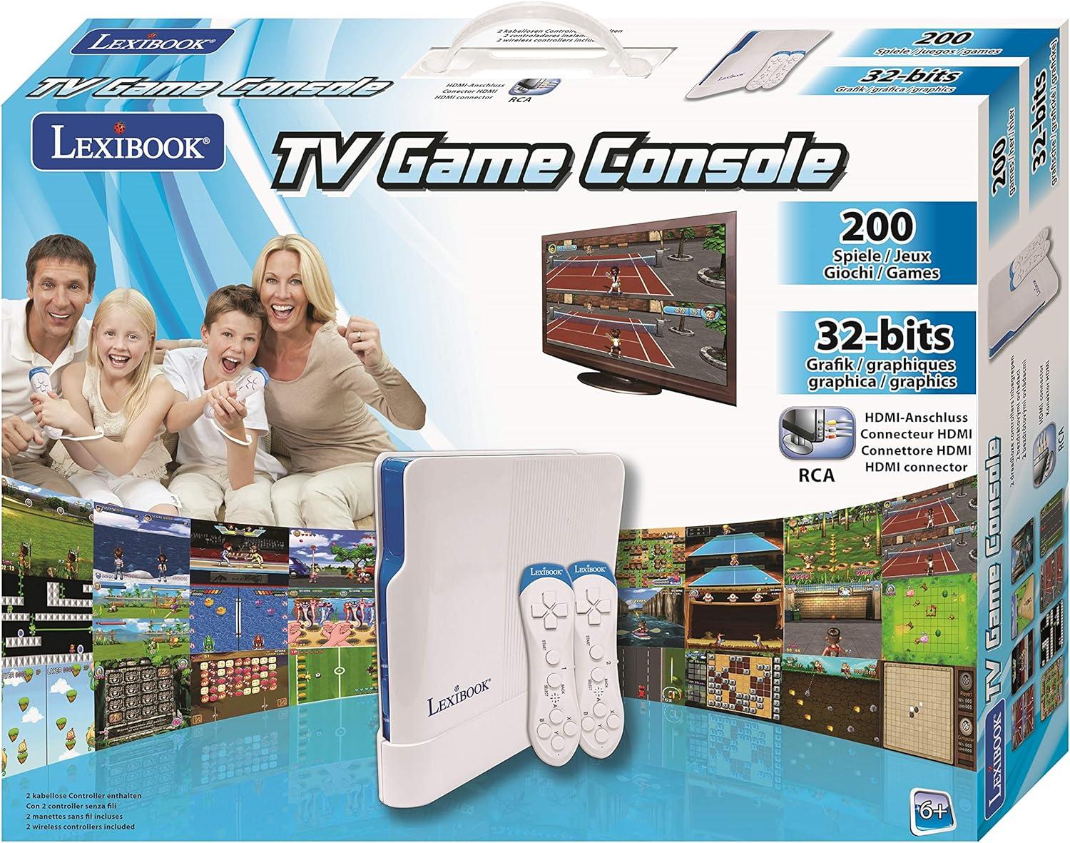 LEXiBOOK TV Game Console, 200 Games, 32-bit, USB-C Adapter, White/Blue, JG7430(JG7430)