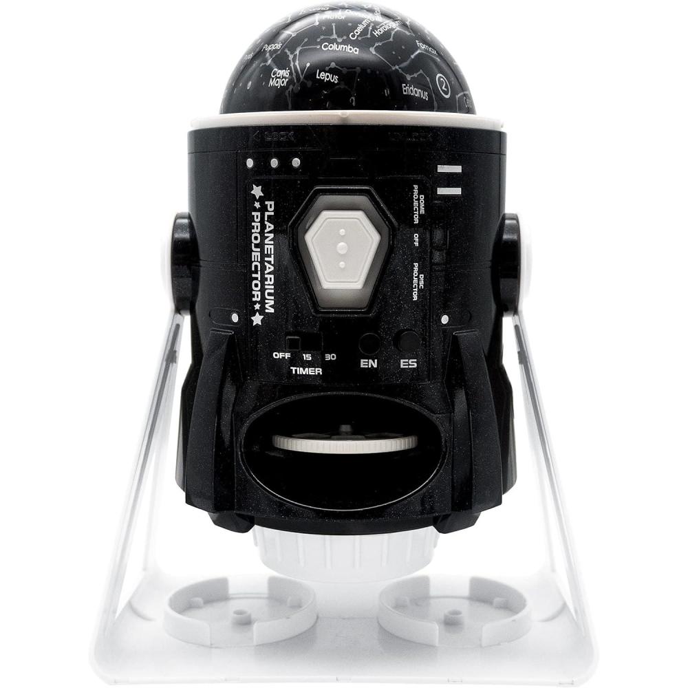 A fun and educational planetarium to discover the stars and planets! The motorized 360-degree constellations projection will turn your room into a fascinating starscape. 2 constellation domes are included to project the constellations and learn their names! Flip the unit and discover space exploration through 24 striking images, from the first steps on the Moon to the most impressive space shuttles. Works on most surfaces: breath-taking projections on your ceilings or walls. Sharpness guaranteed thanks to the built-in focal ring! Adjustable projection angle. Useful: A compartment is included to store the disks! Included: 1 projector + 2 constellation domes + 3 discs with images + instruction manual with constellation map + 1 space booklet. Power supply: 3 x AA/LR6 batteries of 1.5V (not included). Warranty: 2 years.