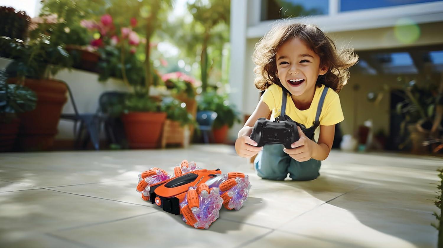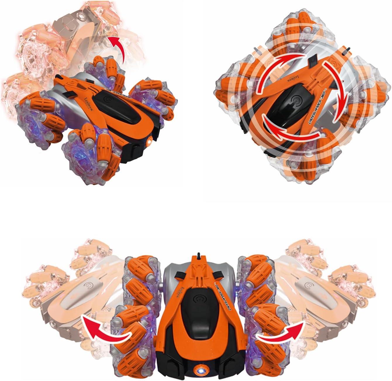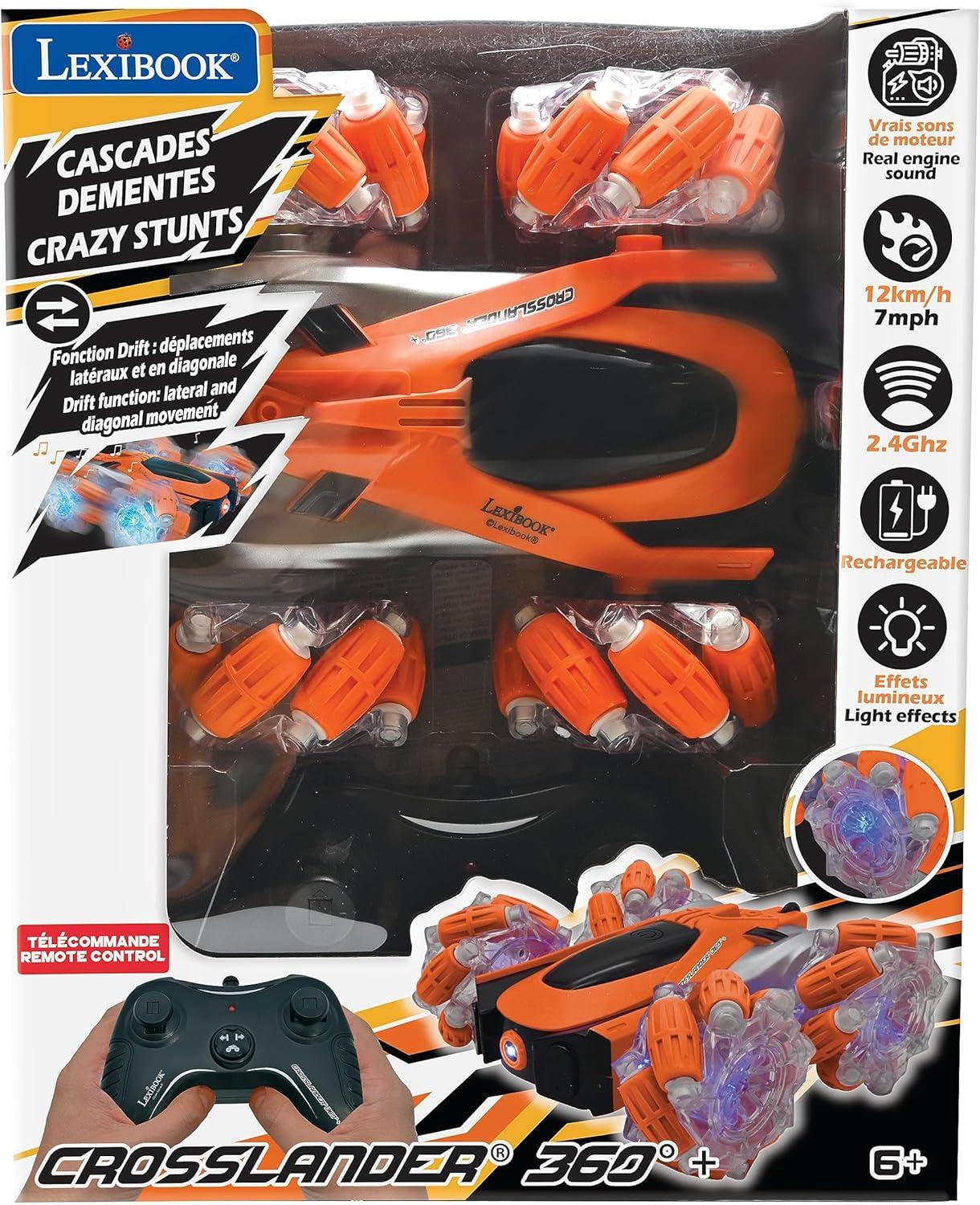 Introducing the Lexibook Crosslander Glow-in-the-Dark Radio Control Car! Unleash limitless fun with this ultimate all-terrain thrill ride. Defy gravity and conquer challenges as you experience an electrifying adventure like never before! Take full control with 360° turns and mind-bending 2-sided rolling. The unique “Drift” function lets you perform jaw-dropping stunts, moving sideways and diagonally. The possibilities are endless, and the excitement is unmatched! Mesmerizing light effects in all four wheels come alive in the darkness, creating a hypnotic spectacle. Realistic engine sounds add to the immersive experience, making each race more thrilling than the last. The ergonomic 2.4 GHz remote control ensures seamless connectivity, preventing any frequency problems from dampening your fun. Conquer tough terrains with precision and ease. Powered by a rechargeable battery, this orange Crosslander offers 20 minutes of adrenaline-packed playtime on just a 1 to 2-hour charge. Zoom around at speeds of 10-12 km/h and experience the thrill of high-speed racing. Designed for adventurers aged 6 and above, the orange Crosslander is built to last. Backed by a 2-year warranty, this durable car promises endless excitement and fun-filled adventures. Say goodbye to ordinary and embrace extraordinary with the Lexibook Crosslander Glow-in-the-Dark Radio Control Car. Orange and black unite to create a fierce and fun ride that will impress everyone! Elevate your racing experience today and revolutionize your playtime with the orange Crosslander!