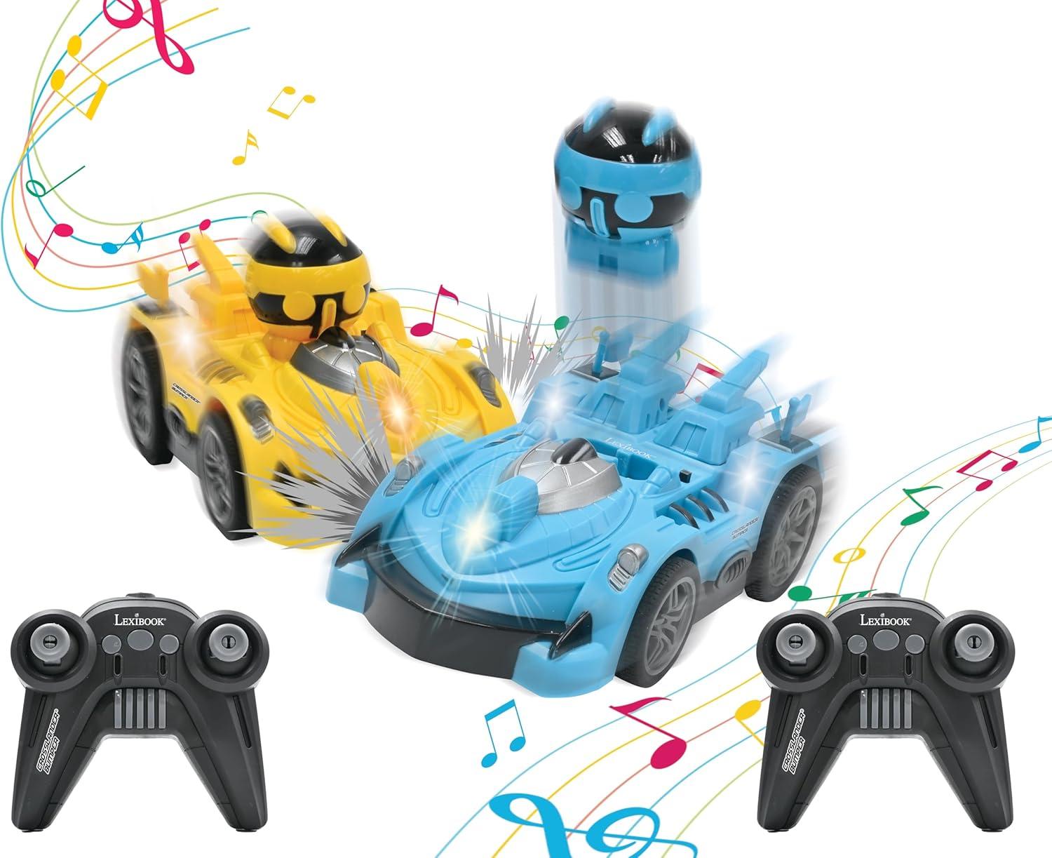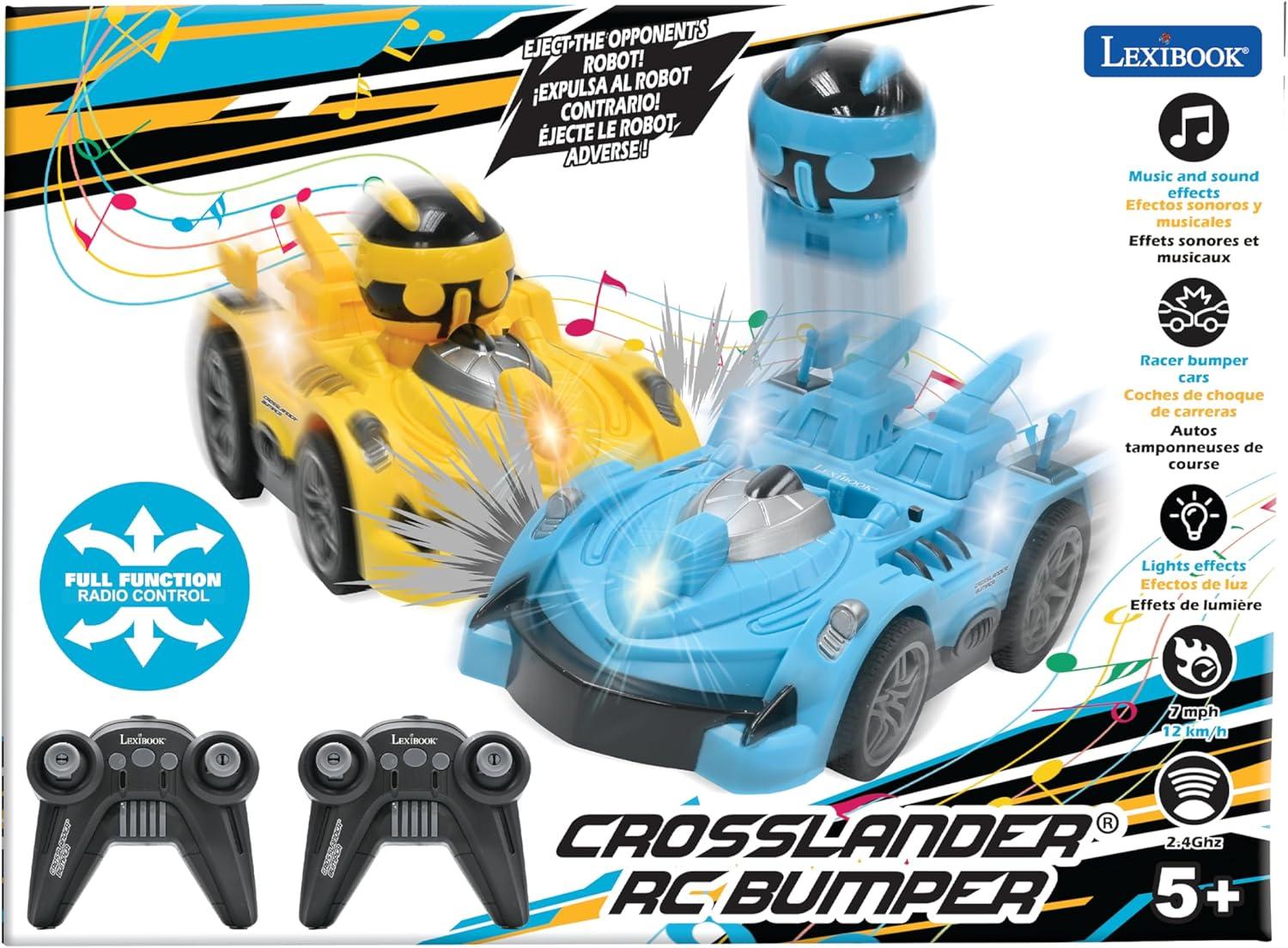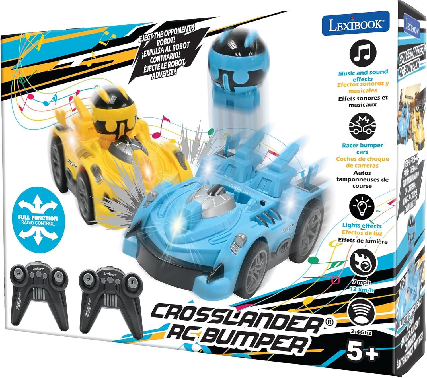 LEXiBOOK, Crosslander® RC Bumper, Set of 2 Radio-Controlled Racer Bumper Cars, up to 12 km/h (7mph), 2 Removable Characters, Sound and Light Effects, Yellow/Blue, RC2