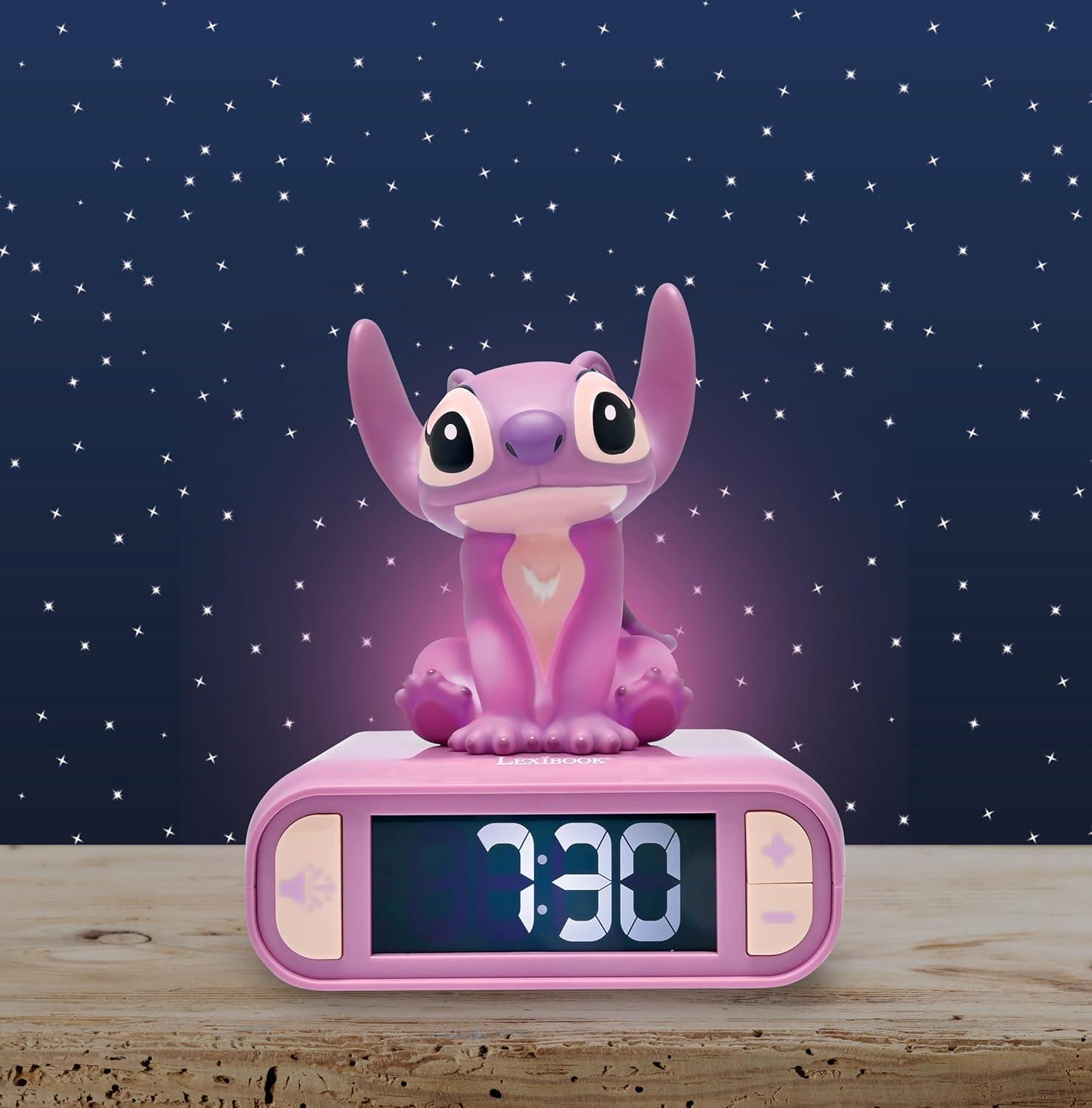 LEXiBOOK, Disney Stitch, Stitch Nightlight Alarm Clock, Sounds and Melodies, LCD Backlit Screen, Luminous, Snooze, Blue, RL800D(Disney Stitch – Angel)