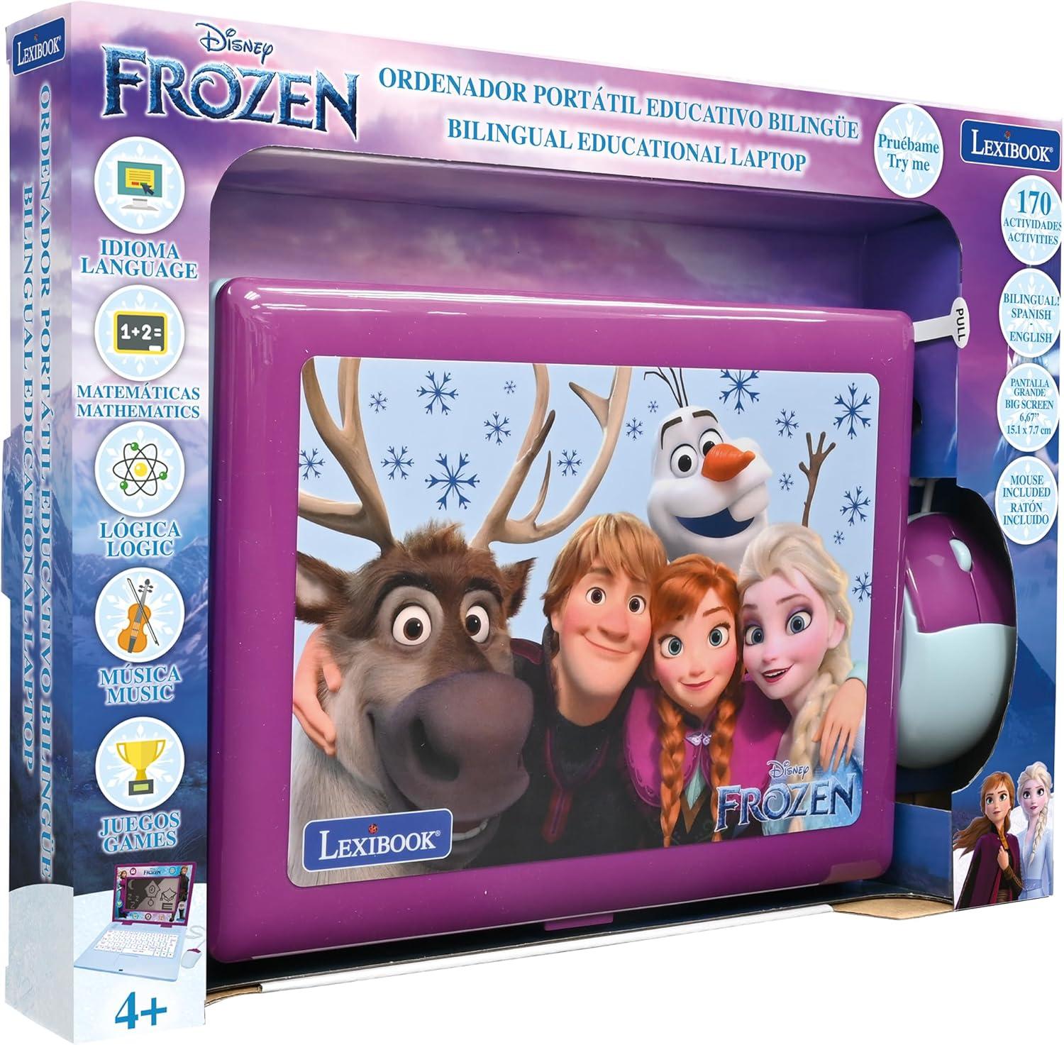 Lexibook, Frozen, Bilingual and Educational Laptop Spanish/English, Toy for Children, 170 Activities to Learn, Play Games and Music, Large Screen, Purple/Blue, JC599FZi2