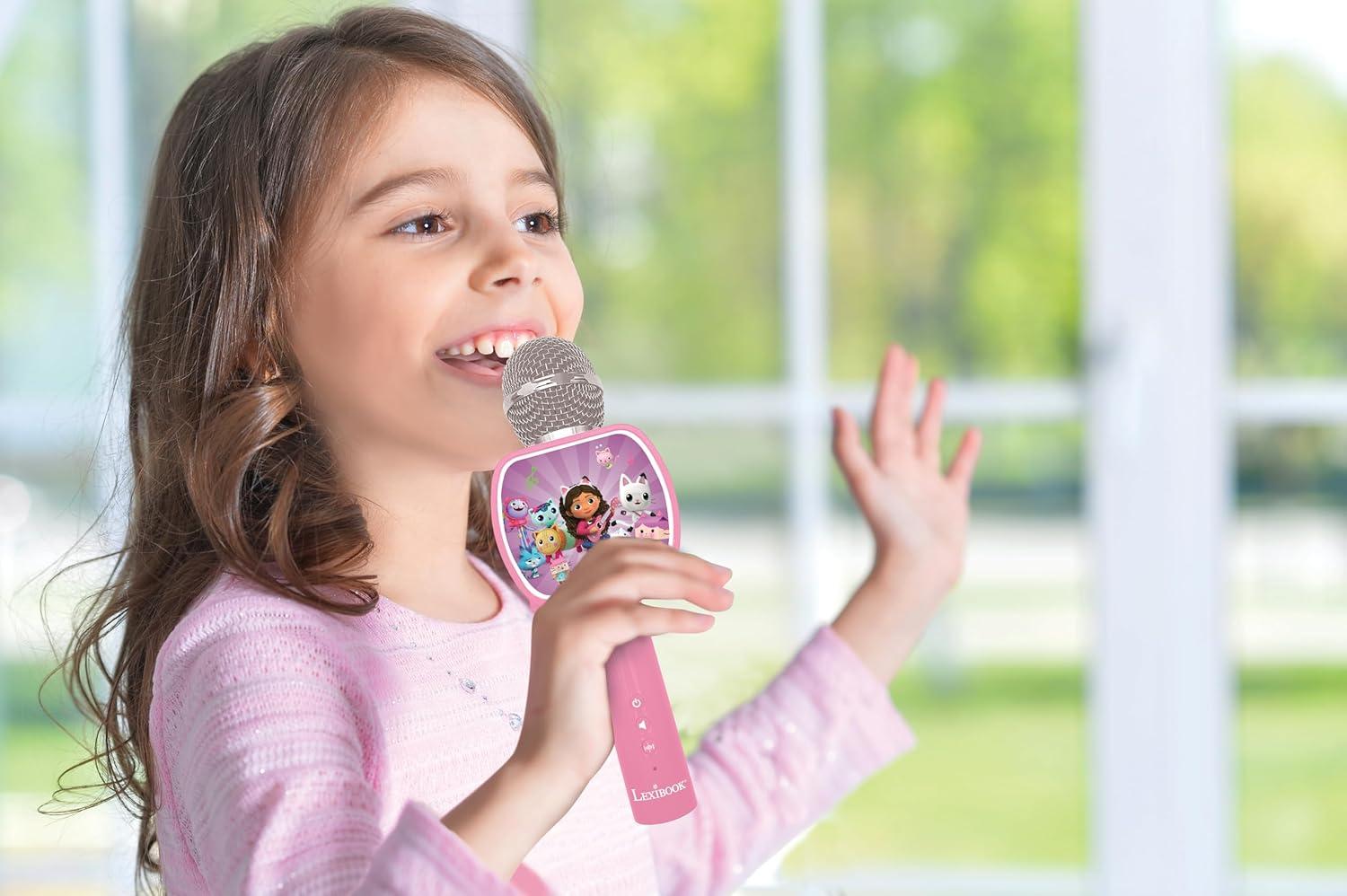 Lexibook, Gabby’s Dollhouse, Bluetooth Microphone with Voice Changing Function, Built-in Speaker, Phone Holder Included, Pink, MIC240GDH