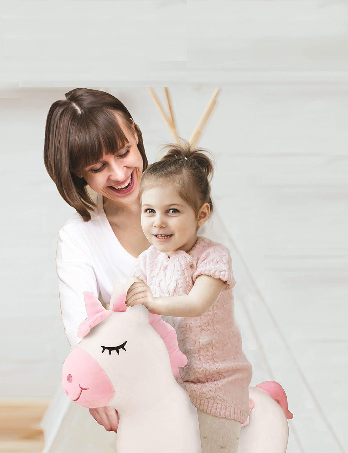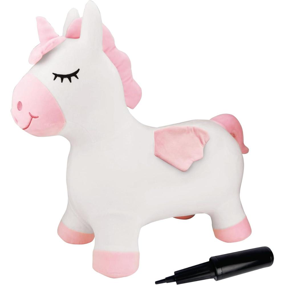 Stable 4 legged unicorn for safe bouncing game!Its ergonomic seat guarantees the stability and comfort of the child.Can be used both indoors and outdoors, for endless fun!Very easy and quick to inflate, thanks to the included airpump.The unicorn inflated size is approximately 50 cm long and 45 cm high, with a seat at 28 cm of the ground.Age 3+. Player should be under adult supervision.Maximum user weight limit: 50 kg / 110 lbs.Warranty: 2 years – Designed and developed in Europe – Made in China.