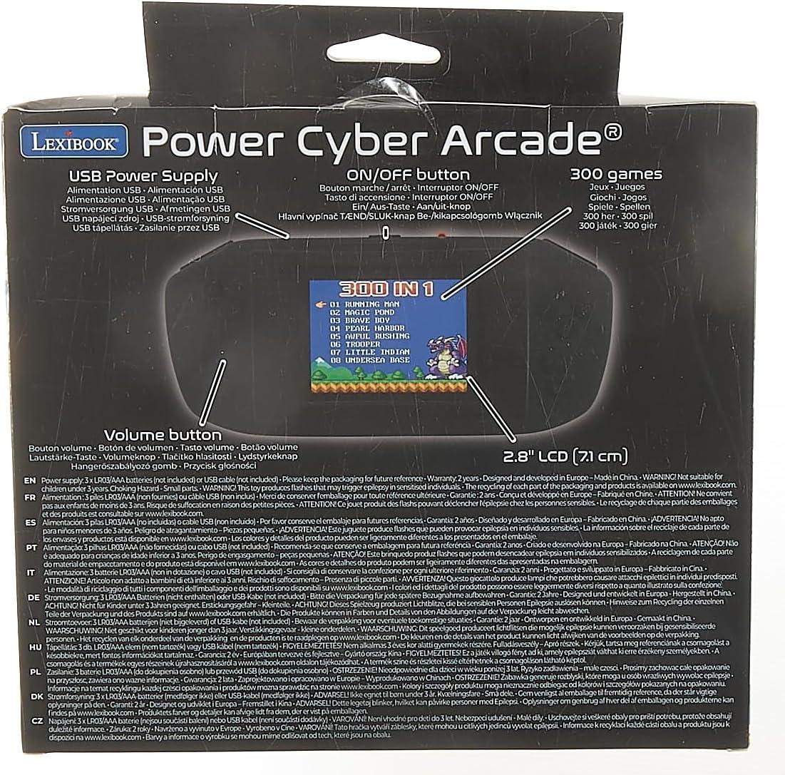 LEXiBOOK JL3000 Power Cyber Arcade Portable Game Console, 300 Games, 2.8″ LCD Color Screen, Black