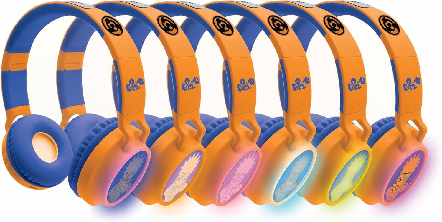 LEXiBOOK, Naruto, Foldable Light-Up Bluetooth® and Wired Headphones with 3D Naruto Universe Design and Volume Limiting, Blue Orange, HPBT015NA