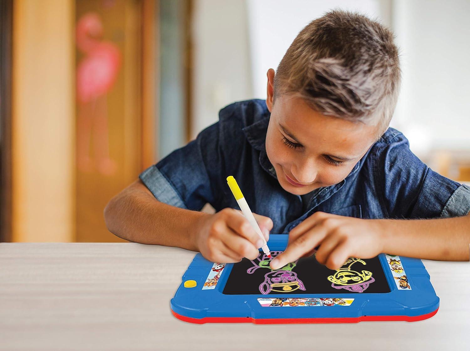 LEXiBOOK Paw Patrol, Neon Electronic Drawing Board, Artistic Creative Toy for Girls and Boys, Cleaning Cloth and Markers Included, Red/Blue, CRNEOPA