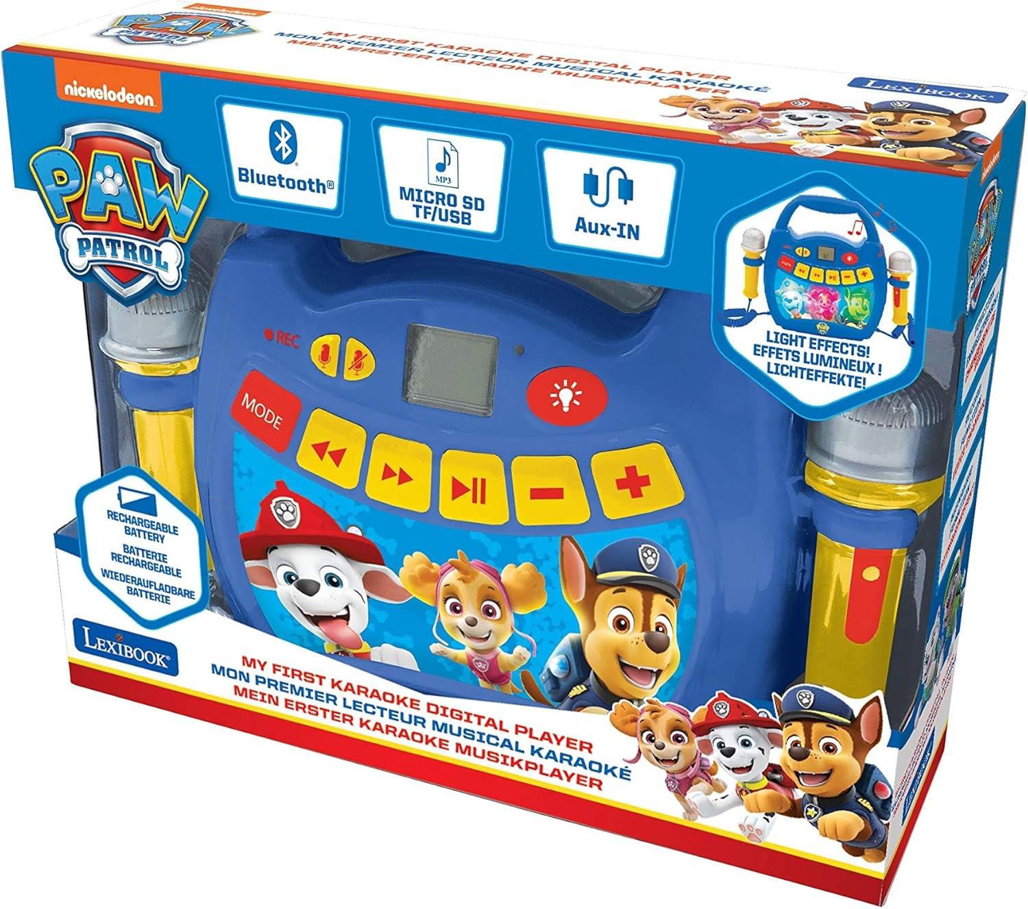 LEXiBOOK – Paw Patrol – Portable Karaoke Digital Player for Kids – Microphones, Light Effects, Bluetooth, Record and Voice Changer Functions, Rechargeable Battery, Blue/red, MP320PAZ(MP320PAZ)