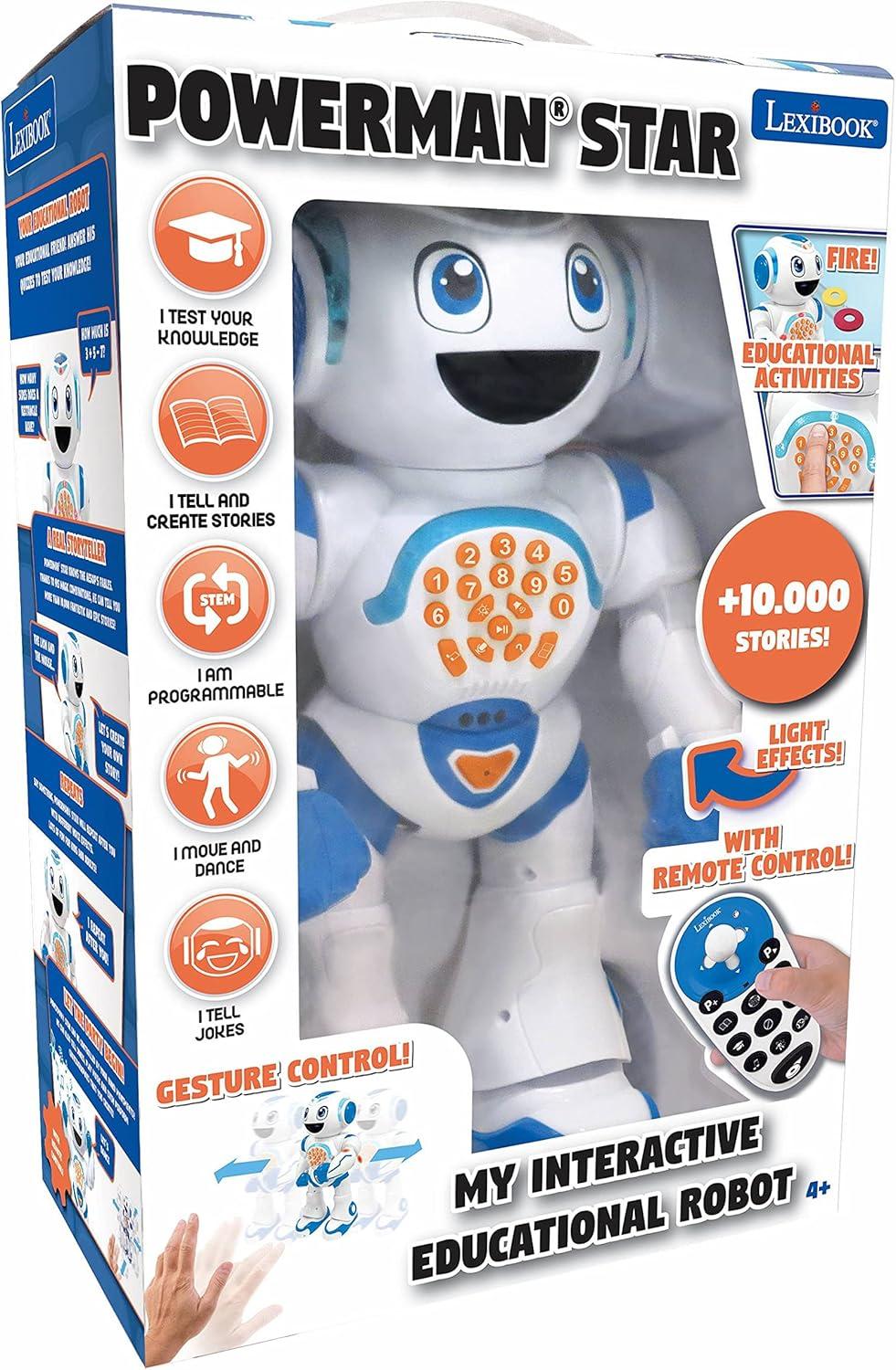 LEXiBOOK, Powerman Neo, My Robot Full of Technology, Remote Control and Gesture Control, Educational Activities in English, Programmable, Music and Dance, Sound and Light Effects, Blue/White, ROB18EN(ROB85EN)