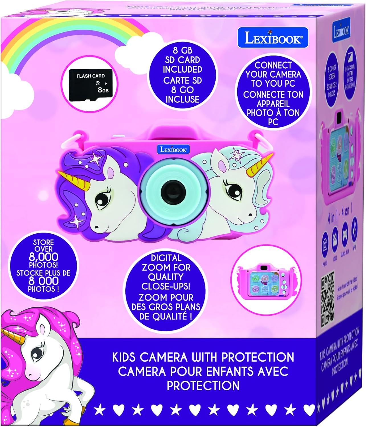 Lexibook Unicorn, 4-in-1 Kids’ Camera with Protection, Photo, Video, MP3, and Game Functions, 15 Frames to Personalize Your Photos, Includes 8GB Memory Card, DJ078UNI